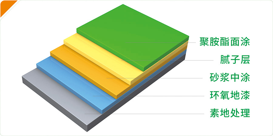 3.砂漿層:使用聚胺脂砂漿中涂加入石英砂,充分?jǐn)嚢韬蠓峙喂纹街攸c填補坑洞和缺陷
